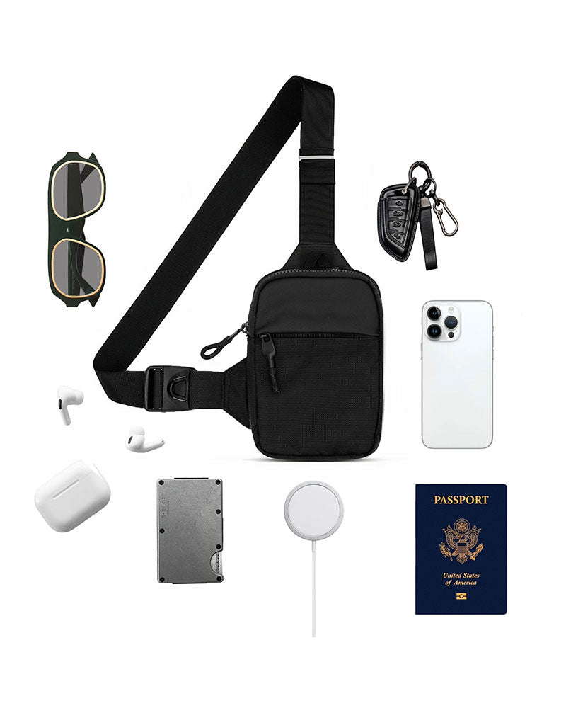 Travel Sling Bag er stor nok til å romme alle essensielle gjenstander under reising, fotturer eller tur. Den er stor nok til at du kan tømme alle lommene dine i den.