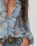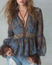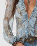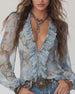 Bluse Ruffle V-Hals Denim