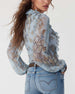 Elegant bluse med trykk og glidelås i blonder