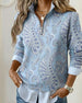 Mønstret Langermet Bluse Med Glidelås Og Volanger