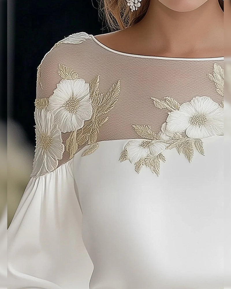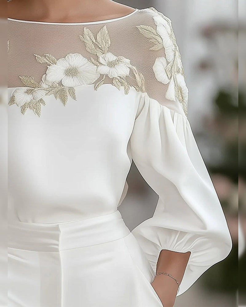 Kasual T-Shirt Med Spets-Panelert Design