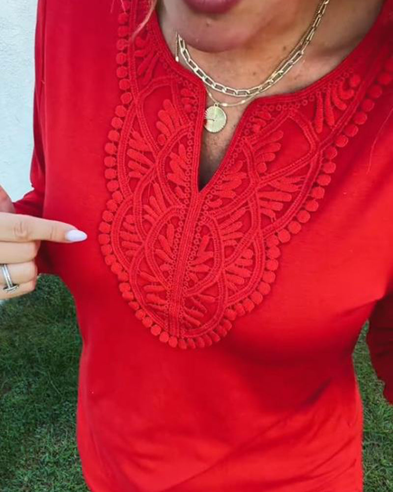 Bluse I Brodert Blonde Med Lange Ermer