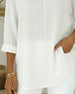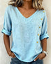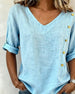 SPESIFIKASJONER Topp type: Bluser Stil: Uformelt Materiale: Bomull Anledning: Daglig Halslinje: V-hals Mønstertype: Ensfarget Ermetype: Vanlig erme Erme lengde: 3/4 erme Passform type: Vanlig Årstid: Vår,Sommer Detaljer: Knapper Pakken inkluderer: 1 x Bluse STØRRELSESTABELL (cm) Størrelse Bryst Lengde S 97 65 M 101 66.5 L 105 68 XL 1...