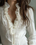 Kortermet Bluse I Ren Bomull Med Volangkrage