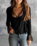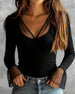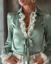Bluse Kniplingspanel Rysjekant V-Hals