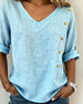 Bluse Bomull Knappdetalj V-hals