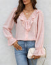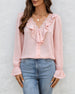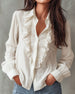 SPESIFIKASJONER Topp type: Bluser Stil: Uformelt Materiale: Bomullsblandinger Anledning: Daglig Halslinje: V-hals Mønstertype: Ensfarget Ermetype: Volanger erme Erme lengde: Langermet Passform type: Vanlig Årstid: Vår,Sommer,Høst,Vinter Detaljer: Knapper,Rufsete Pakken inkluderer: 1 x Bluse STØRRELSESTABELL (cm) Størrelse Bryst Lengde S 92...