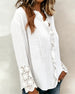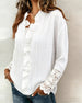 SPESIFIKASJONER Topp type: Bluser Stil: Uformelt Materiale: Bomullsblandinger,Blonder Anledning: Daglig Halslinje: V-hals Mønstertype: Ensfarget Ermetype: Volanger erme Erme lengde: Langermet Passform type: Vanlig Årstid: Vår,Sommer Detaljer: Blonder Pakken inkluderer: 1 x Bluse STØRRELSESTABELL (cm) Størrelse Bryst Lengde S 97 68 M 101 ...