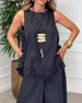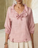 Damebluse avslappet, ensfarget med rysjer