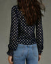 SPESIFIKASJONER Topp type: Bluser Stil: Uformelt Materiale: Bomullsblandinger Anledning: Daglig Halslinje: V-hals Mønstertype: Prikk Ermetype: Lanterne erme Erme lengde: Langermet Passform type: Vanlig Årstid: Vår,Sommer Detaljer: Rufsete,Glidelås Pakken inkluderer: 1 x Bluse STØRRELSESTABELL (cm) Størrelse Bryst Lengde S 97 65 M 101 66....