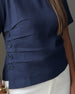 Topp Trekvarts Erm Rund Hals Plissert