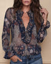 Bluse med avslappet, halv glidelås og rysjer i leopardprint