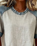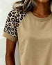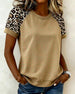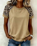 T-skjorte Leopardmønster Fargeblokkert Rund Hals