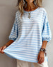 SPESIFIKASJONER Topp type: Topper Stil: Uformelt Materiale: Bomullsblandinger Anledning: Daglig Halslinje: Rund hals Mønstertype: Stripete Ermetype: Lanterne erme Erme lengde: Halv erme Passform type: Vanlig Årstid: Vår,Sommer Pakken inkluderer: 1 x Topp STØRRELSESTABELL (cm) Størrelse Bryst Lengde S 92 65 M 96 66.5 L 100 68 XL 106 6...