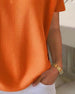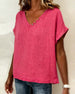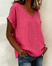Bluse Lin-Blanding V-Hals Kortærme Avslappet