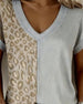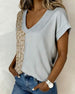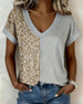 T-skjorte V-uttringning Fargeblokkering Leopardtrykk