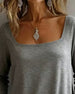 Topp U-Hals Ensfarget Langermet