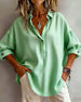 Bluse Langermet Ensfarget Knapper Ned