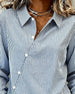 SPESIFIKASJONER Topp type: Bluser Stil: Uformelt Materiale: Bomullsblandinger Anledning: Daglig Halslinje: Skjortekrage Mønstertype: Stripete Ermetype: Vanlig erme Erme lengde: Langermet Passform type: Vanlig Årstid: Vår,Høst Detaljer: Knapper Pakken inkluderer: 1 x Bluse STØRRELSESTABELL (cm) Størrelse Bryst Lengde S 97 65 M 101 66.5 ...
