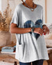 T-skjorte Knappet V-utringning Casual