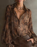 Bluse Moteriktig Flounce Erme Trykt