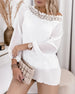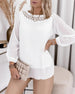 Bluse Kniplingskrage Patchwork Rynket