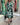 Løs printet kjole med V-hals klokkeerme og patchwork