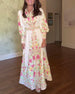 Elegant maxikjole med lange ermer i jakkeslag med blomstertrykk