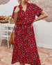 SPESIFIKASJONER Stil: Uformelt Materiale: 3% Spandex,97% Polyester Kjole type: A-line Kjolens lengde: Knelengde Halslinje: V-hals Mønstertype: Blomstret Ermetype: Vanlig erme Erme lengde: Kort erme Detaljer: Rynket Passform type: Vanlig Årstid: Sommer Anledning: Daglig Pakken inkluderer: 1 x Kjole STØRRELSESTABELL (cm) Størrelse Br...
