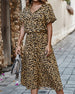 SPESIFIKASJONER Stil: Uformelt Materiale: Bomullsblandinger Kjole type: A-line Kjolens lengde: Midi Halslinje: Rund hals Mønstertype: Leopard Ermetype: Vanlig erme Erme lengde: Kort erme Passform type: Vanlig Årstid: Vår, Sommer, Høst Anledning: Daglig Pakken inkluderer: 1 x Kjole STØRRELSESTABELL (cm) Størrelsestabell Bryst Lengde S 98...