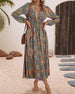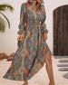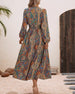 SPESIFIKASJONER Stil: Ferie, Elegant Materiale: Spandex, Polyester Kjole type: A-line Kjolens lengde: Maxi Halslinje: V-hals Mønstertype: Paisley Ermetype: Lanterne erme Erme lengde: Langermet Detaljer: Rynket Passform type: Vanlig Årstid: Vår, Sommer, Høst Anledning: Daglig, Ferie Pakken inkluderer: 1 x Kjole STØRRELSESTABELL (cm) ...