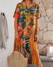 SPESIFIKASJONER Stil: Uformelt Materiale: Bomullsblandinger Kjole type: Rett Kjole Kjolens lengde: Maxi Halslinje: Slag Mønstertype: Trykt Ermetype: Lanterne erme Erme lengde: Halv erme Detaljer: Knapper Passform type: Vanlig Årstid: Vår,Sommer Anledning: Daglig Pakken inkluderer: 1 x Kjole STØRRELSESTABELL (cm) Størrelse Bryst Lengde S...