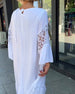 SPESIFIKASJONER Stil: Elegant Materiale: 5% Spandex, 95% Polyester, Blonder Kjole type: Rett Kjole Kjolens lengde: Midi Halslinje: Rund hals Mønstertype: Ensfarget Ermetype: Volanger erme Erme lengde: Langermet Detaljer: Lappeverk, Blonder Passform type: Løs Årstid: Vår, Sommer, Høst Anledning: Daglig Pakken inkluderer: 1 x Kjole STØRRELSES...