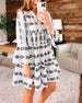 SPESIFIKASJONER Stil: Uformelt Materiale: 100% Polyester Kjole type: Rett Kjole Kjolens lengde: Knelengde Halslinje: V-hals Mønstertype: Trykt Ermetype: Utvidet erme Erme lengde: Langermet Detaljer: Dusk, Knapper Passform type: Løs Årstid: Vår, Sommer Anledning: Daglig Pakken inkluderer: 1 x Kjole STØRRELSESTABELL (cm) Størrelse Br...