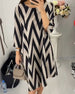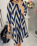 SPESIFIKASJONER Stil: Uformelt Materiale: Bomullsblandinger Kjole type: Rett Kjole Kjolens lengde: Knelengde Halslinje: V-hals Mønstertype: Stripete, Trykt Ermetype: Vanlig erme Erme lengde: Halv erme Detaljer: Spalte Passform type: Løs Årstid: Vår, Sommer, Høst Anledning: Daglig Pakken inkluderer: 1 x Kjole STØRRELSESTABELL (cm) ...