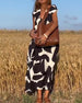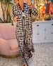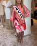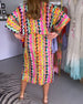 Uformell kjole med leopard og fargerikt trykk og dyp V
