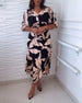 SPESIFIKASJONER Stil: Elegant Materiale: 5% Spandex, 95% Polyester Kjole type: A-line Kjolens lengde: Maxi Halslinje: Off Shoulder Mønstertype: Trykt Ermetype: Utvidet erme Erme lengde: Ni poengs erme Detaljer: Rynket Passform type: Vanlig Årstid: Vår, Sommer Anledning: Daglig Pakken inkluderer: 1 x Kjole STØRRELSESTABELL (cm) Stø...
