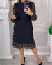 SPESIFIKASJONER Stil: Uformelt Materiale: 95% Polyester,5% Spandex Kjole type: Rett Kjole Kjolens lengde: Midi Mønstertype: Brev,Fargeblokk Ermetype: Vanlig erme Erme lengde: Langermet Detaljer: Lomme,Snøring Passform type: Vanlig Årstid: Høst,Vinter Anledning: Daglig Pakken inkluderer: 1 x Kjole STØRRELSESTABELL (cm) Størrelse Bry...