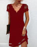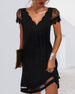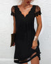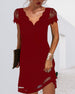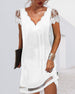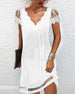 SPESIFIKASJONER Stil: Elegant Materiale: Bomullsblandinger, Blonder Kjole type: shift-dress kjole Kjolens lengde: Over kneet Halslinje: V-hals Mønstertype: Ensfarget Ermetype: Vanlig erme Erme lengde: Kort erme Detaljer: Lappeverk Passform type: Vanlig Årstid: Vår, Sommer, Høst Anledning: Daglig Pakken inkluderer: 1 x Kjole STØRRELSESTABELL...
