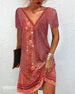 SPESIFIKASJONER Stil: Uformelt Materiale: Bomullsblandinger Kjole type: Rett Kjole Kjolens lengde: Midi Halslinje: V-hals Mønstertype: Trykt Ermetype: Vanlig erme Erme lengde: Kort erme Detaljer: Spalte Passform type: Vanlig Årstid: Vår,Sommer Anledning: Daglig Pakken inkluderer: 1 x Kjole STØRRELSESTABELL (cm) Størrelse Bryst Lengde S 97 ...