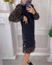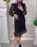 SPESIFIKASJONER Stil: Elegant Materiale: A: 100% Polyester; B: 97% Polyester, 3% Spandex Kjole type: A-line Kjolens lengde: Knelengde Halslinje: U-hals Mønstertype: Paljett Ermetype: Lanterne erme Erme lengde: Langermet Detaljer: Rufsete Passform type: Vanlig Årstid: Høst,Vinter Anledning: Daglig Pakken inkluderer: 1 x Kjole STØRRELSESTABE...