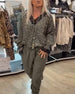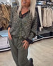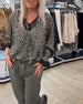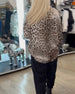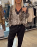 Mote leopardprint bluse med V-hals blonder med patchwork