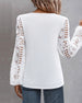 SPESIFIKASJONER Topp type: Bluser Stil: Uformelt Materiale: Bomullsblandinger, Blonder Anledning: Daglig Halslinje: V-hals Mønstertype: Ensfarget Ermetype: Pufferme Erme lengde: 3/4 erme Passform type: Vanlig Årstid: Vår, Sommer, Høst Detaljer: Lappeverk, Uthult Pakken inkluderer: 1 x Bluse STØRRELSESTABELL (cm) Størrelse Bryst(cm...