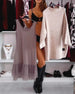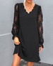 SPESIFIKASJONER Stil: Elegant Materiale: Polyester Kjole type: Rett Kjole Kjolens lengde: Knelengde Halslinje: V-hals Ermetype: Lanterne erme Erme lengde: Langermet Detaljer: Lappeverk, Gjennomsiktig Passform type: Vanlig Årstid: Vår, Sommer, Høst Anledning: Daglig Pakken inkluderer: 1 x Kjole STØRRELSESTABELL (cm) Størrelse Bryst...