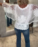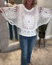 Bluse Sommerfuglsarm Rund Hals Brodert