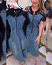 SPESIFIKASJONER Stil: Uformelt Materiale: 65% Bomull, 32% Polyester, 3% Spandex Kjole type: A-line Kjolens lengde: Midi Halslinje: Rund hals Mønstertype: Fargeblokk Ermetype: Vanlig erme Erme lengde: Kort erme Detaljer: Lomme,Glidelås Passform type: Vanlig Årstid: Vår,Sommer Anledning: Daglig Pakken inkluderer: 1 x Kjole STØRRELSESTABELL (...