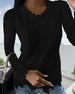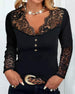 SPESIFIKASJONER Topp type: Topper Stil: Elegant, Sexy Materiale: 35% Spandex, 65% Polyester Anledning: Daglig Halslinje: V-hals Mønstertype: Ensfarget Ermetype: Vanlig erme Erme lengde: Langermet Passform type: Vanlig Årstid: Vår, Høst Detaljer: Lappeverk, Knapper, Uthult Pakken inkluderer: 1 x Topper STØRRELSESTABELL (cm) Stør...