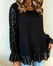 SPESIFIKASJONER Stil: Uformelt Materiale: Bomullsblandinger,Mesh Kjole type: Rett Kjole Kjolens lengde: Knelengde Halslinje: Rund hals Mønstertype: Paljett,Ensfarget Ermetype: Vanlig erme Erme lengde: Langermet Passform type: Vanlig Årstid: Høst,Vinter Anledning: Daglig Pakken inkluderer: 1 x Kjole STØRRELSESTABELL (cm) Størrelse Bryst Lengd...