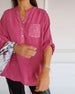 SPESIFIKASJONER Topp type: Topper Stil: Uformelt, Fest Materiale: 100% Polyester Anledning: Daglig, Natt ute Halslinje: V-hals Mønstertype: Fargeblokk Ermetype: Vanlig erme Erme lengde: Langermet Passform type: Løs Årstid: Vår, Sommer, Høst Detaljer: Lappeverk, Lomme, Knapper Pakken inkluderer: 1 x Topp STØRRELSESTABELL (cm) Størrelsest...