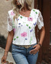 Kjole Rund Hals Kort Erme Blomstertrykk